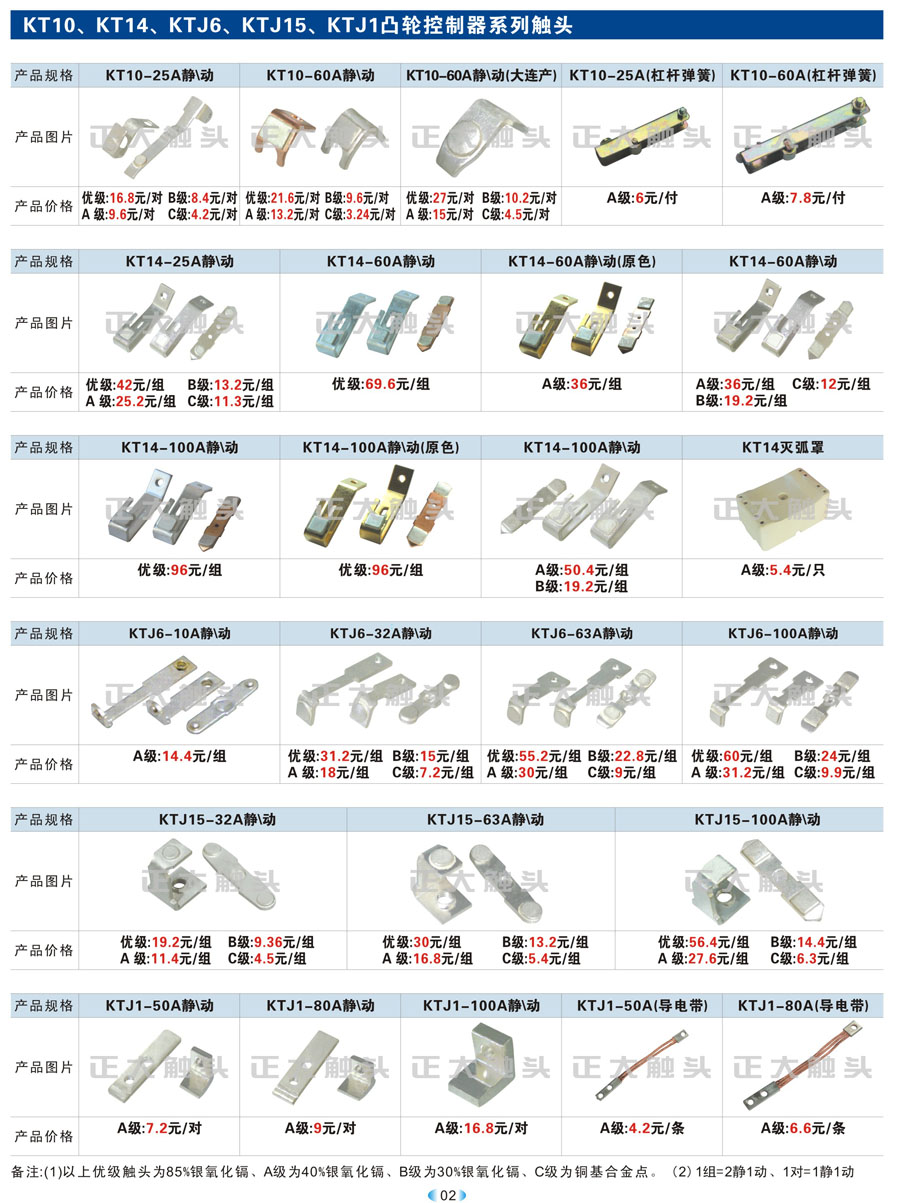 KT10、KT14、KTJ6、KTJ15、KTJ1凸輪控制器系列觸頭
