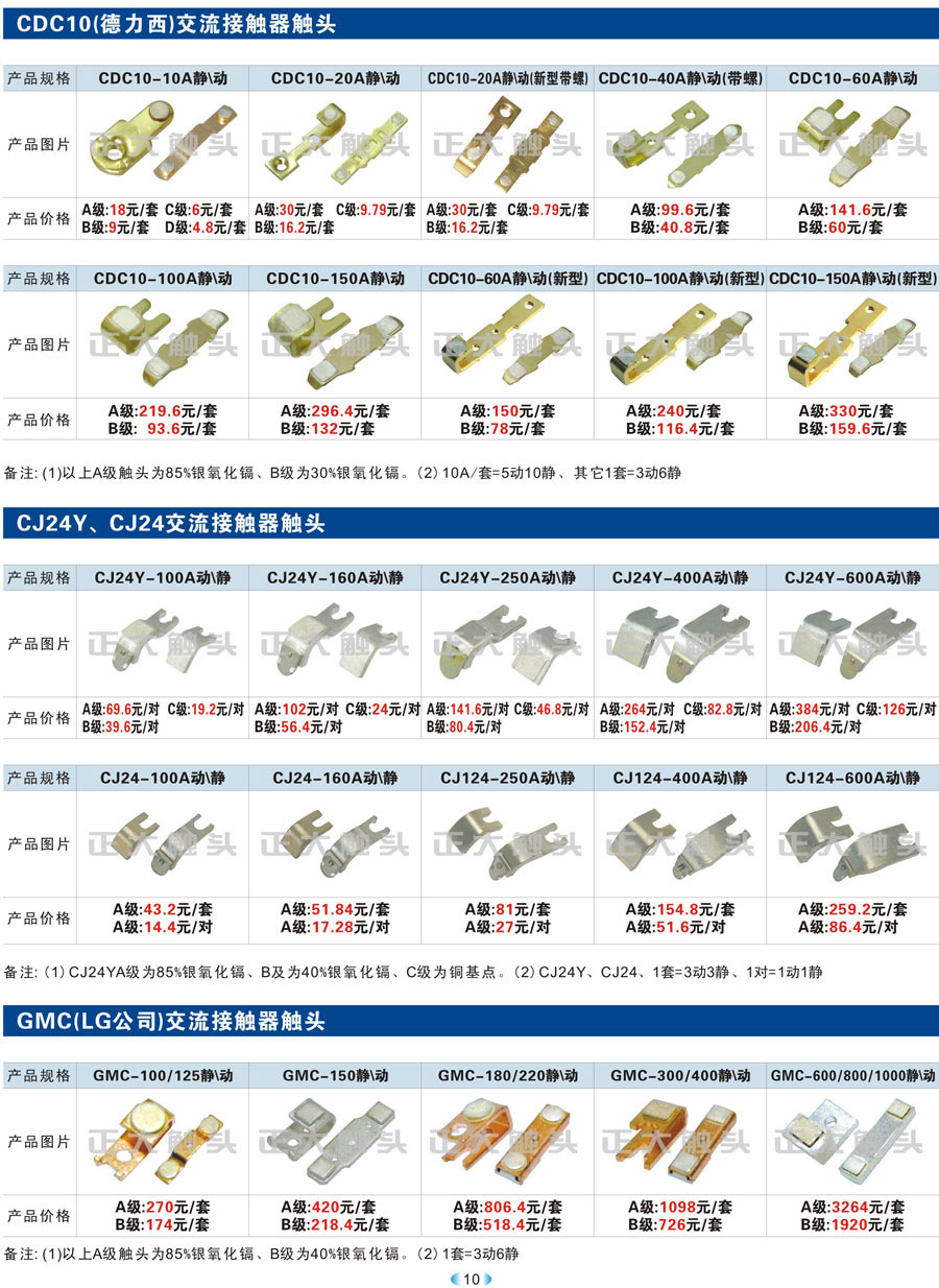 CDC10、CJ24Y、CJ24、GMC(LG公司)交流接觸器觸頭