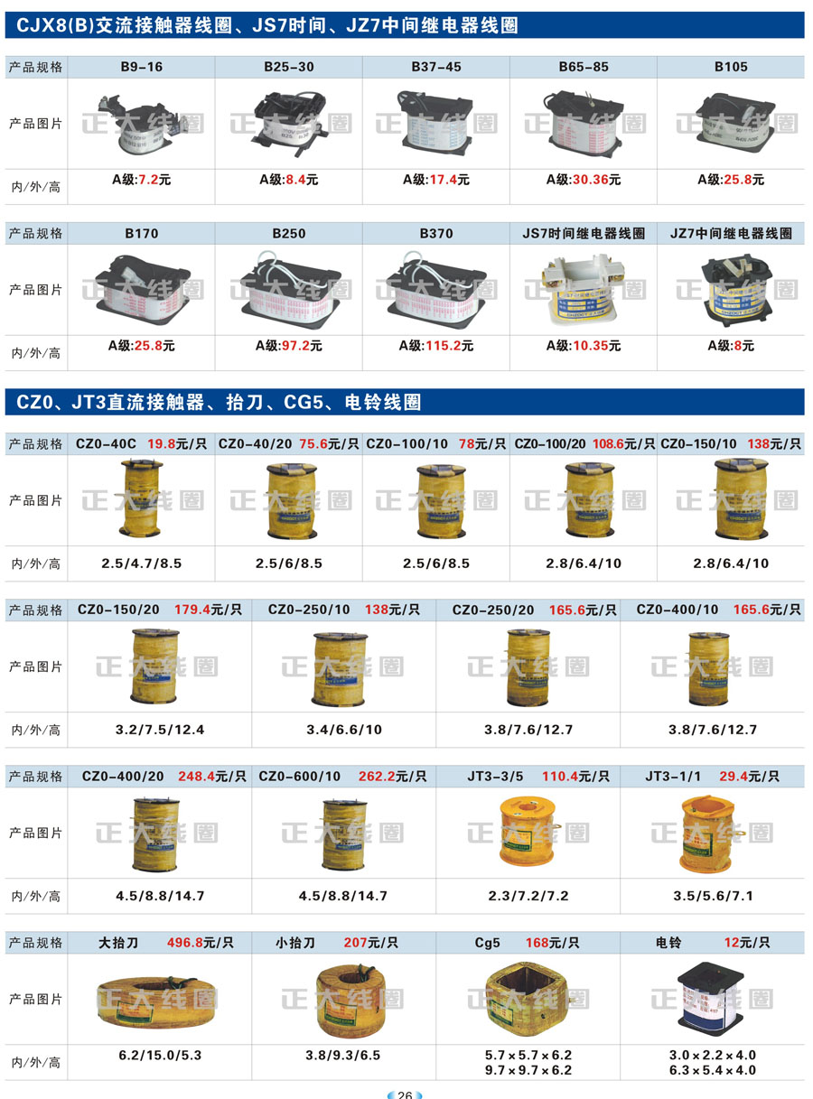 CJX8(B)交流接觸器線圈、JS7時間、JZ7中間繼電器線圈、CZ0、JT3直流接觸器、抬刀、CG5、電鈴線圈